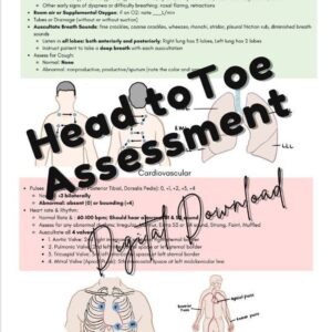 This is a 3 page head to toe assessment with added hand-drawn pictures. Perfect for any nursing student just starting out in their clinical or health assessment class.